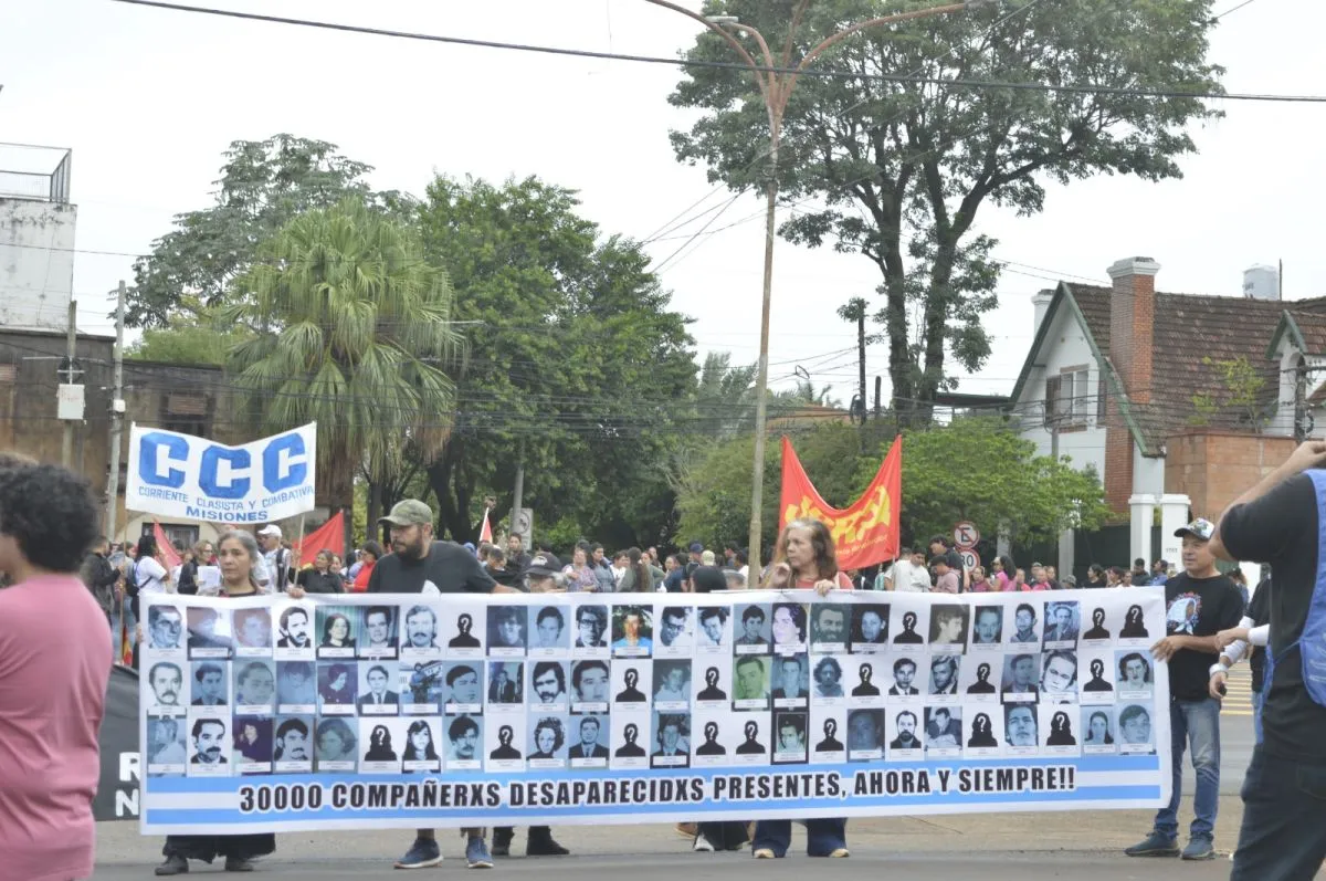 En el marco del Día Nacional de la Memoria por la Verdad y la Justicia, una multitud se congregó este martes 24 en la intersección de Mitre y Buenos Aires de Posadas para participar de la marcha que recuerda a las víctimas del terrorismo de Estado.