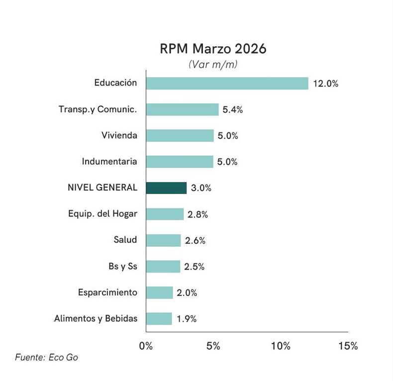 Para el economista de IPC LyP, Julián Neufeld, "el principal factor detrás de este cambio fue el efecto del conflicto en Medio Oriente sobre los precios de los combustibles, que registraron un aumento de alrededor del 6% en la última semana". Y anticipó que "de cara a abril, el principal riesgo pasa por la velocidad con que el pass-through de combustibles se traslade a la canasta general vía costos de transporte".